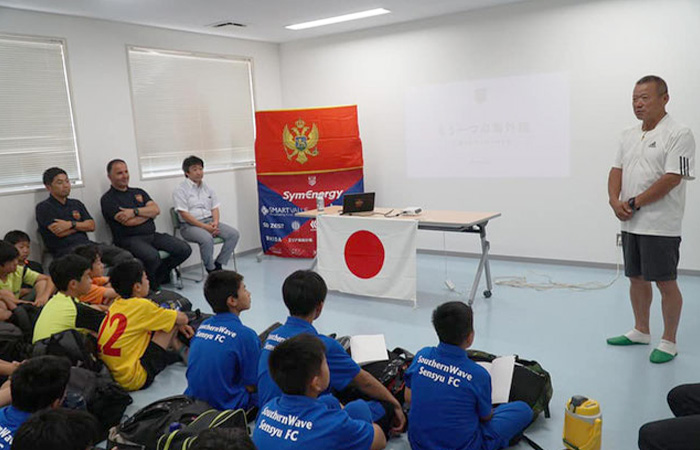 写真は、当連盟会長:北谷がモンテネグロのプロチーム: FKアドリア様と交流を用いた際の写真です。
